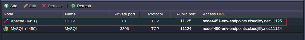 The rest of fields, i.e. Public port and Access URL, will be configured by Cloudjiffy automatically.